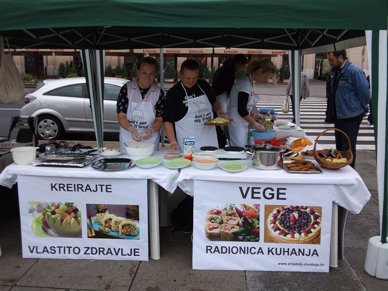 Uz cjelodnevni informativni štand, u 11 sati počinje besplatna radionica kuhanja za sve zainteresirane građane koji će moći vidjeti pripremu veganskih slanih i slatkih jela, pitati sve što ih zanima vezano za pripremu namirnica i za vegetarijansku odnosno vegansku prehranu općenito.
